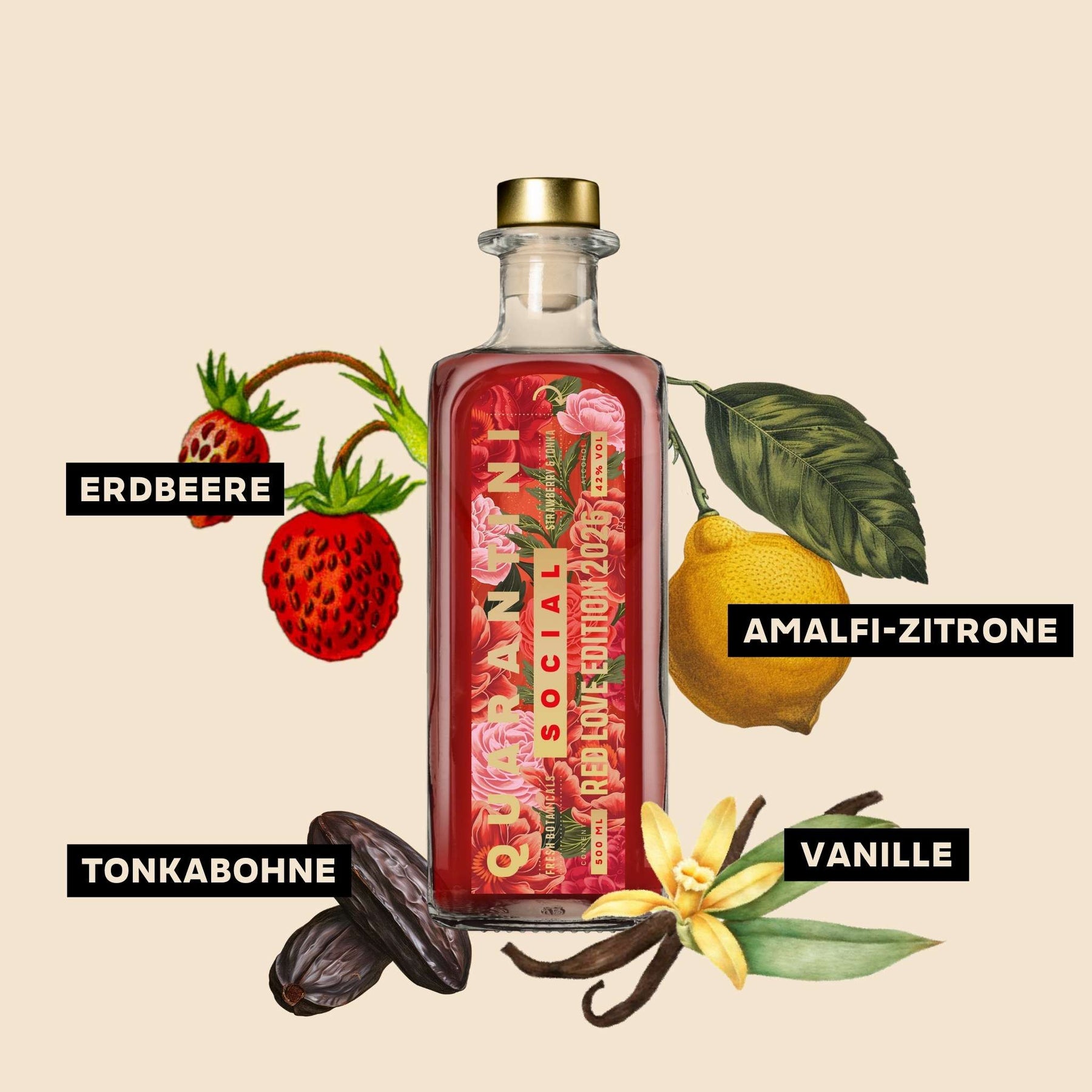 Key-Botanicals: Die harmonische Komposition aus sonnengereifter Erdbeere, Amalfi-Zitrone, Tonkabohne und feiner Vanille verleiht diesem Gin eine samtige Tiefe und eine unwiderstehlich warme Fruchtigkeit.